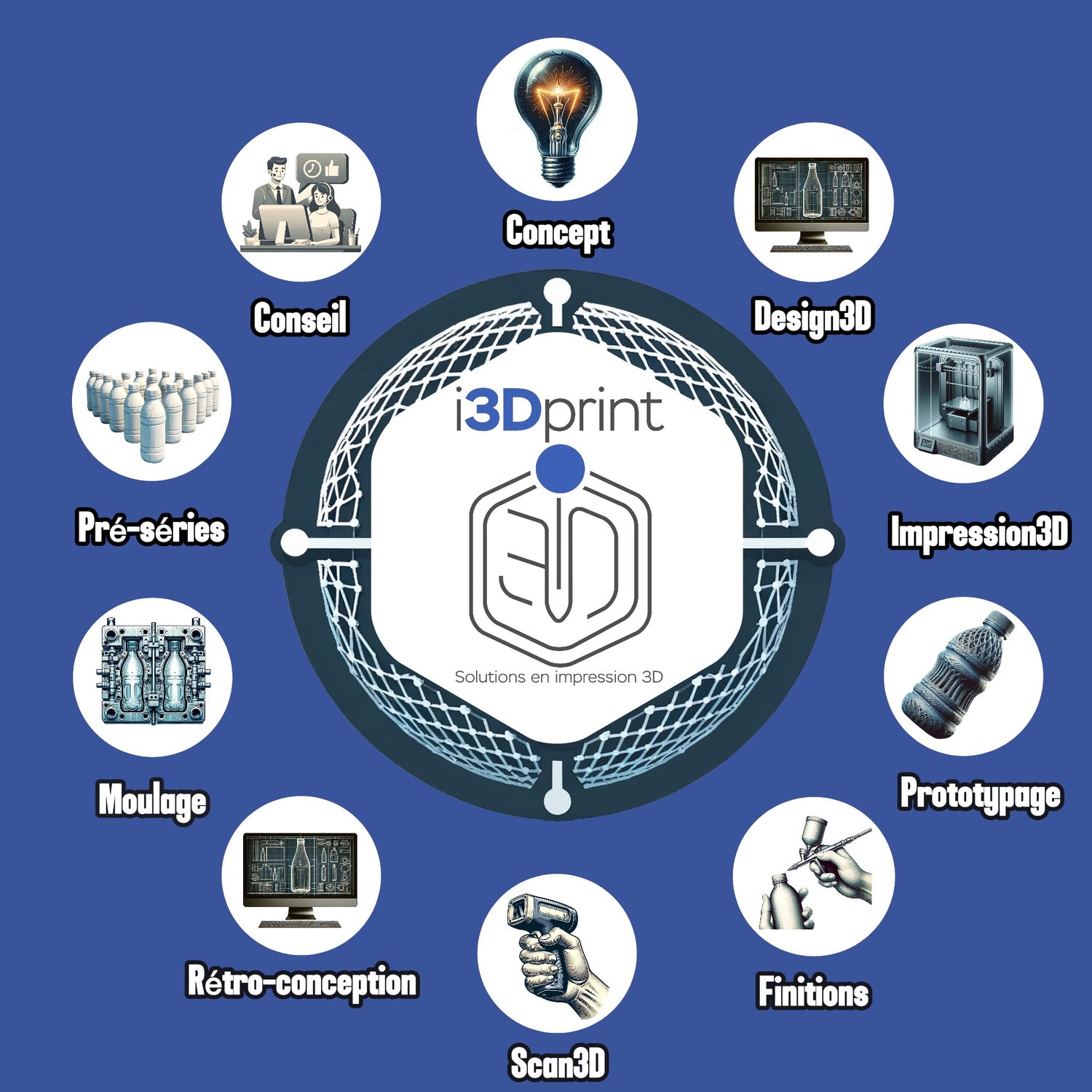 i3Dprint est une entreprise spécialisée dans la modélisation 3D, l’impression 3D, le Scan 3D et la fabrication de petites séries. Nos équipes mettent à votre disposition, depuis 2016, une gamme complète de services de qualité pour vous accompagner et apporter une réponse spécifique à vos besoins!